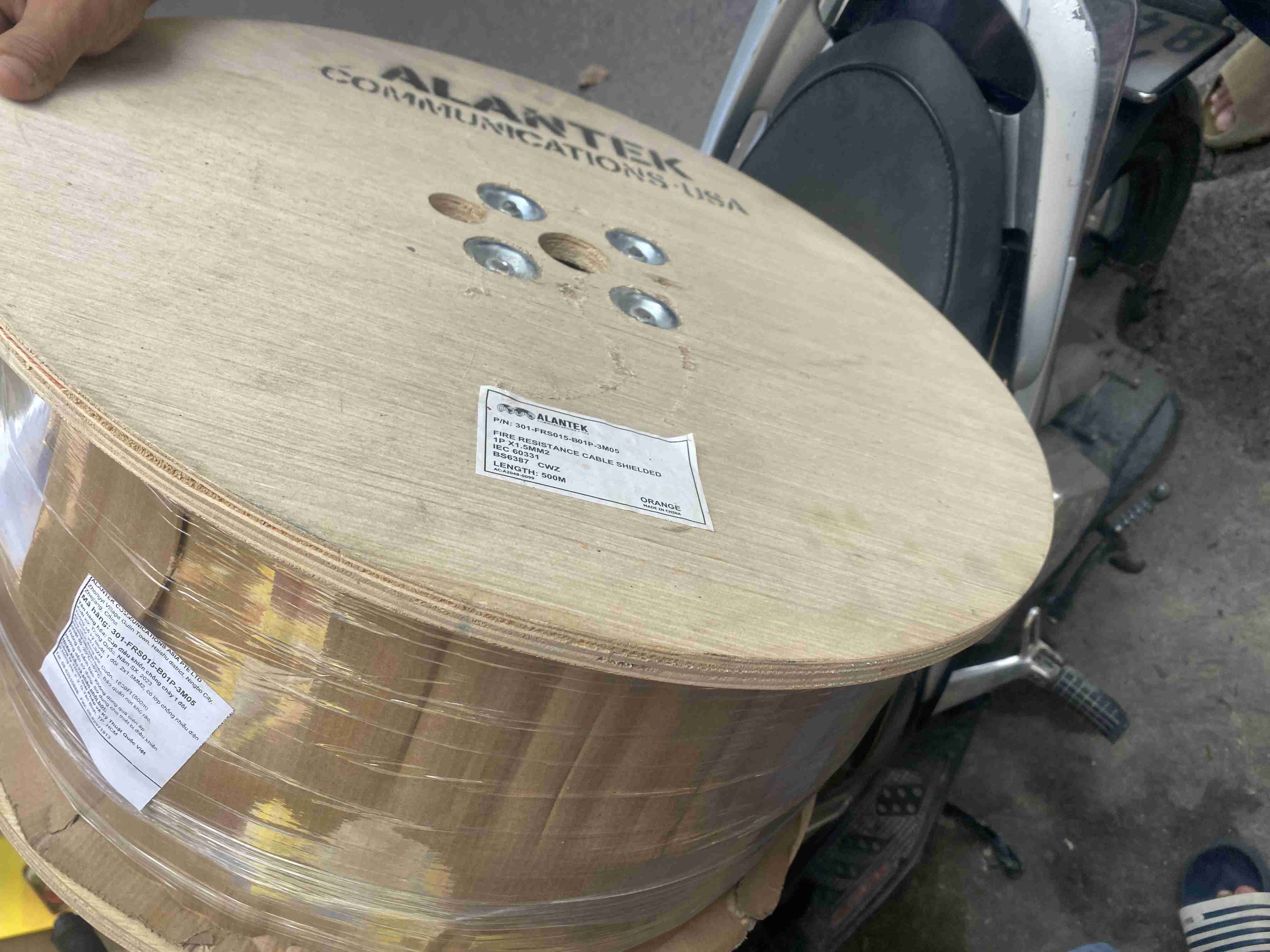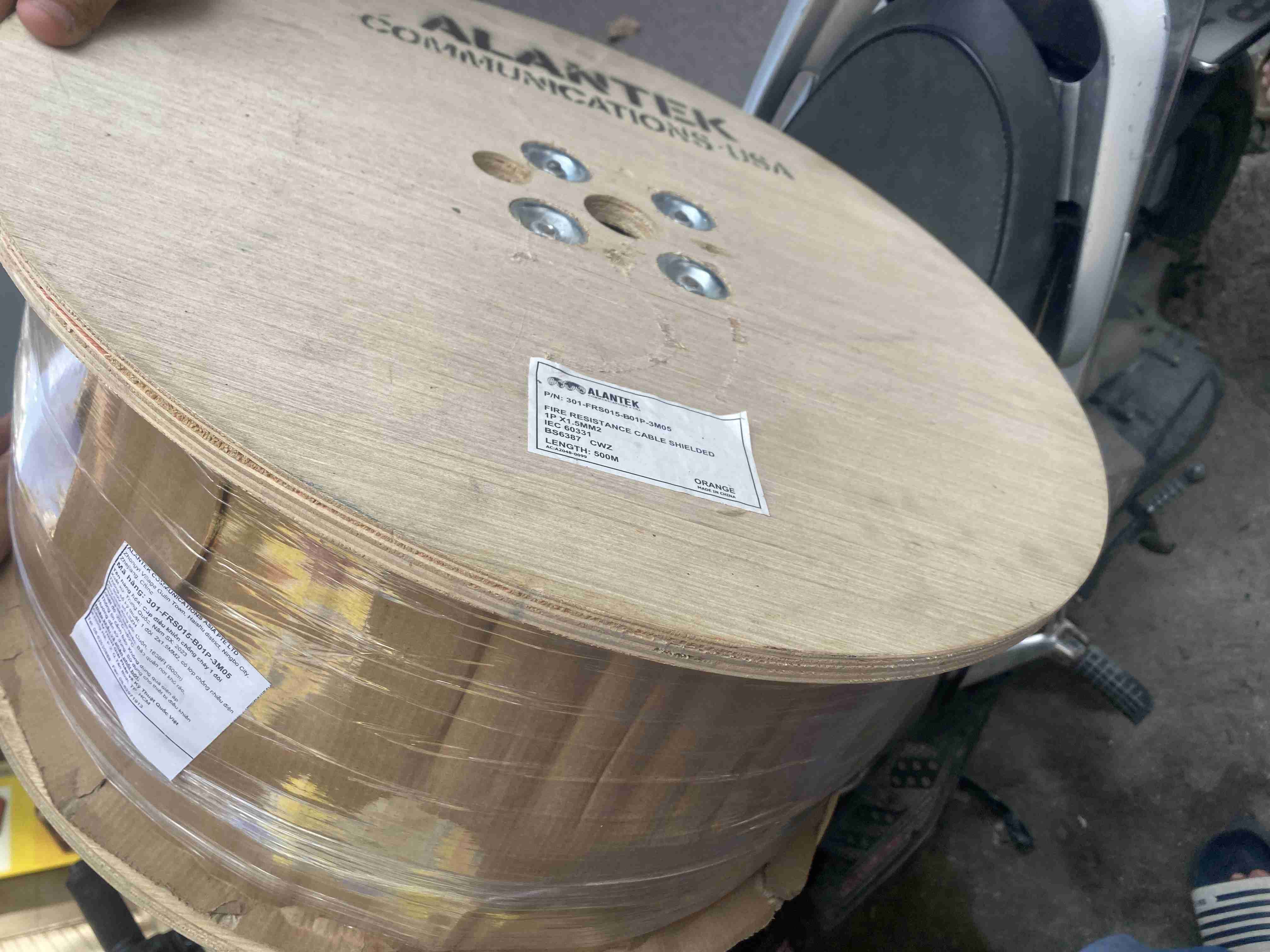 Alantek USA 2core x 1.5mm2 ( 1x 1.5mm2) Fire Resistant Shielded Cable, standars IEC 60331, IEC 60332-1 Orange, BS 6387 C,Z ( CU/ Silicon/GT/Foil/LSZH) LSZH Jacket. Cáp chống cháy với lõi đồng, cách điện bằng slicon chịu nhiệt, lớp vải thủy tinh GT ngăn cháy, màng nhôm chống nhiễu và dây te đồng mạ thiếc, vỏ ngoài LSZH không tạo khói độc. Chống cháy đạt chuẩn C ( BS6387-C) ở nhiêt độ 950 độC trong 180 phút, chịu va đập theo thiêu chuẩn Z ( BS6387 Z) ở nhiêt độ 950 độ C trong 15 phút.