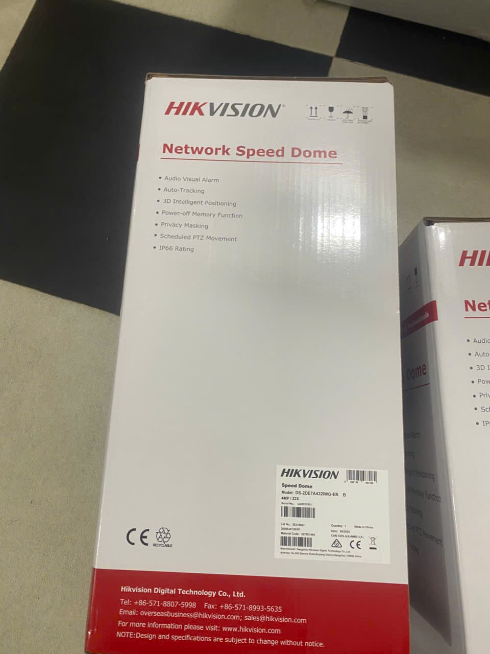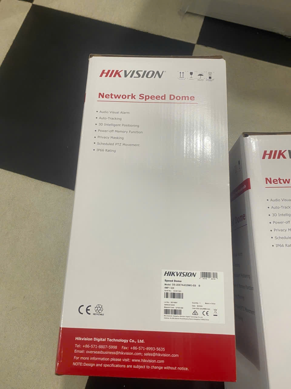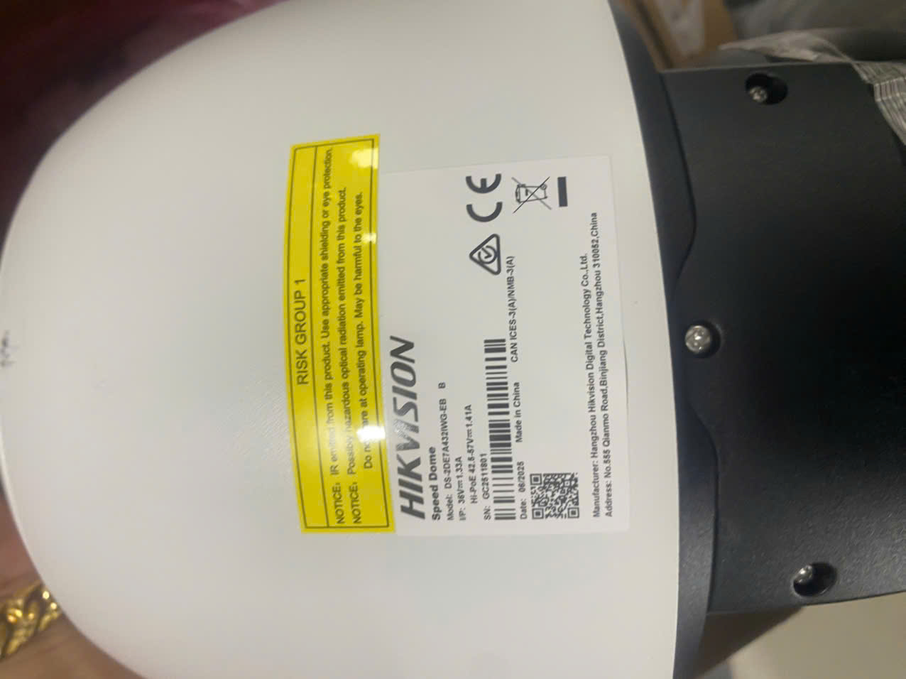 Camera IP 4MP HIKVISION DS-2DE7A432IWG-EB(B)Các thông số của Camera Speed dome IP AI chống báo động giả Hikvision DS-2DE7A432IW-AEB(T5)Độ phân giải 4.0 Megapixel1/2.8" progressive scan CMOSHỗ trợ đèn flash ánh sáng trắng & loa báo động32X zoom quang học and 16X zoom KTSThuật toán AI deep learning phân biệt người & phương tiệnFace capture: Chụp ảnh lên đến 5 khuôn mặt cùng lúcHồng ngoại: 200mmicroSD/SDHC/SDXC 256GBAlarm: 2 inputs, 1 outputAudio: 1 input, 1 outputTích hợp 1 loa ngoàiBLC, HLC, 3D DNR, WDR 120dB, Digital defog, chống rung EISSmart Tracking Manual tracking, auto-tracking24 VAC, max. 42 W (including max. 18 W for IR and max. 10 W for heater); Hi-PoE