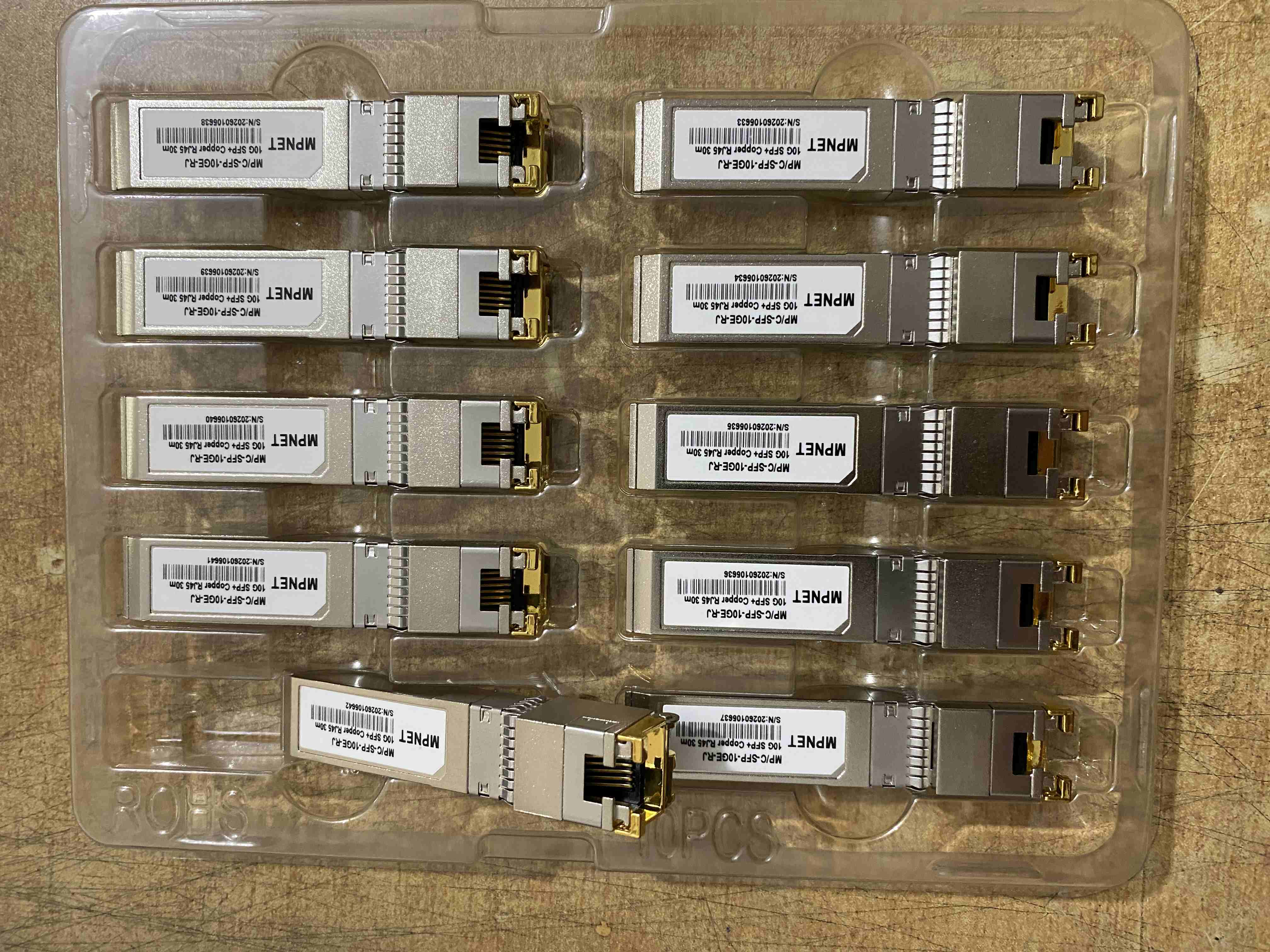 Module cáp đồng 10G, 30M Hãng MP NET P/n MP/C-SFP-10GE-RJ 1. 10Gbps SFT-T copper 30mKhoảng cách truyền cáp quang: 30mCổng kết nối quang: RJ45Loại tín hiệu: RJ45Tốc độ truyền dữ liệu: 10 GbpsNhiệt độ hoạt động: 0 – 70°CNguồn điện: 3.3VGiao diện kết nối đồng RJ45Hỗ trợ Hot PluggableNhiệt độ hoạt động của module đồngChuẩn: 0~+70°CCông nghiệp:-40~+85 °CTương thích với thông số kỹ thuật MSA SFPChuẩn đoán số giao diện giám sát. Tương thích với SFF-8472Ứng dụng:Các Router và Switches ATMCơ sở hạ tầng SONET/SDH SwitchCác ứng dụng Fast Ethernet