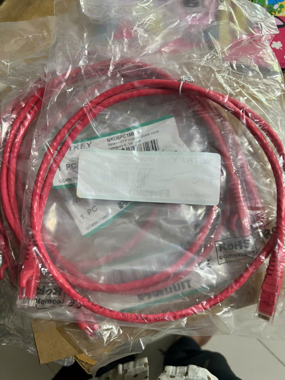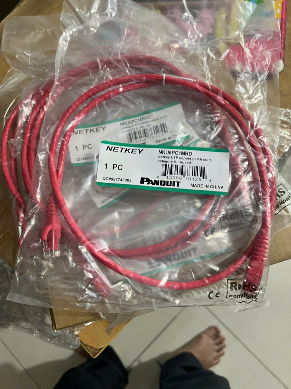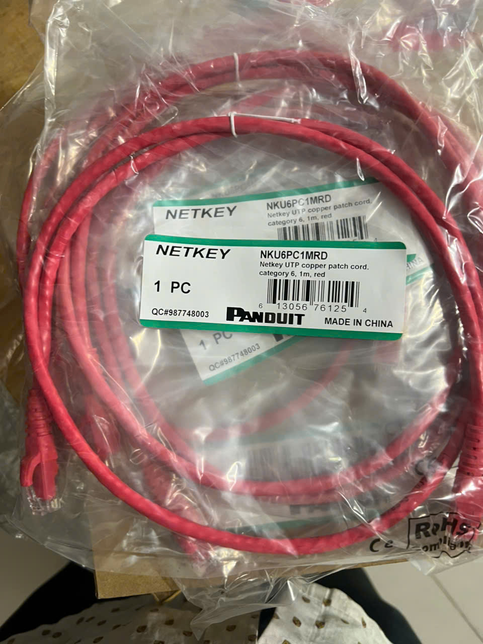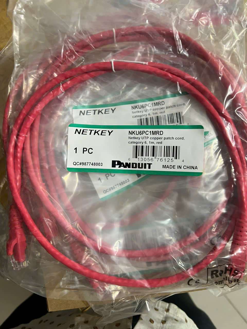 Sợi cáp nhảy đồng, mã NKU6PC1MRD, chiều dài 1m, màu đỏ, nhà sản xuất PANDUITDây nhảy Cat6 Panduit NK6PC1MGRY 1 mét màu đỏ ( Red )UTP patch cord PanduitMã sản phẩm: NK6PC*MGRY (* là chiều dài dây cáp)Loại cáp: Cat6 UTP không chống nhiễu, 24 AWGLõi bện từ nhiễu sợi nhỏ (stranded). 100% lõi đồng nguyên chấtVỏ cáp được làm bằng vật liệu PVC chống cháy, cho tuổi thọ cao, bên bỉ.Hạt mạng ở 2 đầu dây được làm bằng nhựa Polycarbonate cho độ bền cao8 chân tiếp xúc được mạ vàng 50 microinches, cho hiệu suất vượt trội, có tính đàn hồi tốt.Màu sắc: Xanh lá – GreenLẫy bấm được thiết kế dạng trượt, chống gãy và dễ thao tác khi rút ra cắm vào.Bảo hành hệ thống lên tới 25 nămCó nhiều lựa chọn màu sắc cáp với các màu: BU (Blue), RD (Red), WH (Off White). Chiều dài: 1, 2, 3, 5, 7,10 métĐạt tiêu chuẩn: ANSI/TIA-568.2-D Category 6 and ISO 11801 Class E standards for all frequencies from 1 to 250 MHz; Meets ANSI/TIA-1096-A (formerly FCC Part 68); IEC 60603-7; UL 1863 and CAN/CSA-C22.2 (UL File E129886), RoHS Compliant, Supports IEEE 802.3af/802.3at and 802.3bt type 3 and type 4 PoE applications; RoHS Compliant; wired to be compatible with both T568A and T568B wiring schemes.Đã được kiểm định bởi bên thứ 3 độc lập và đạt hiệu suất theo tiêu chuẩn ANSI/TIA-568.2-D Category 6 and ISO 11801 Class E channel requirements at swept frequencies up to 250 MHz. Meets ANSI/TIA-568.2-D and ISO 11801 Category 6 component requirements at swept frequencies up to 250 MHz
