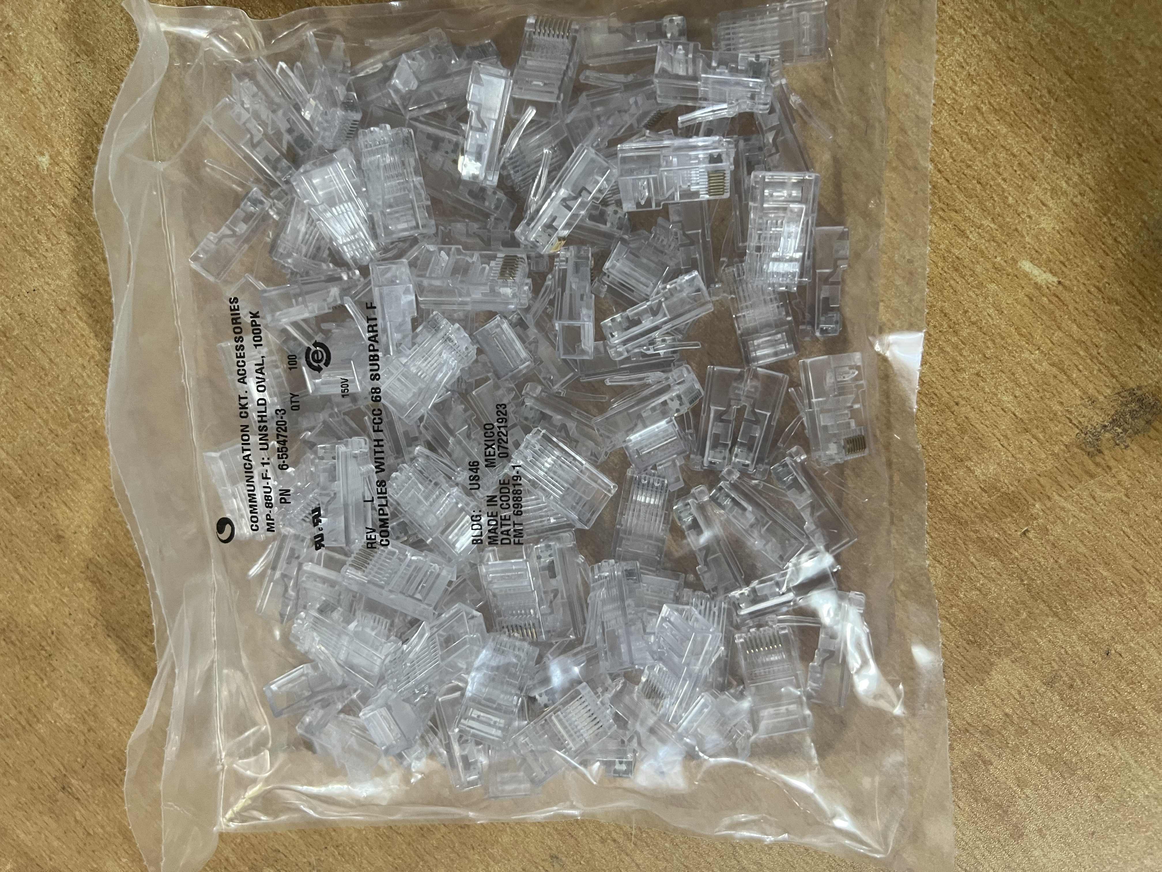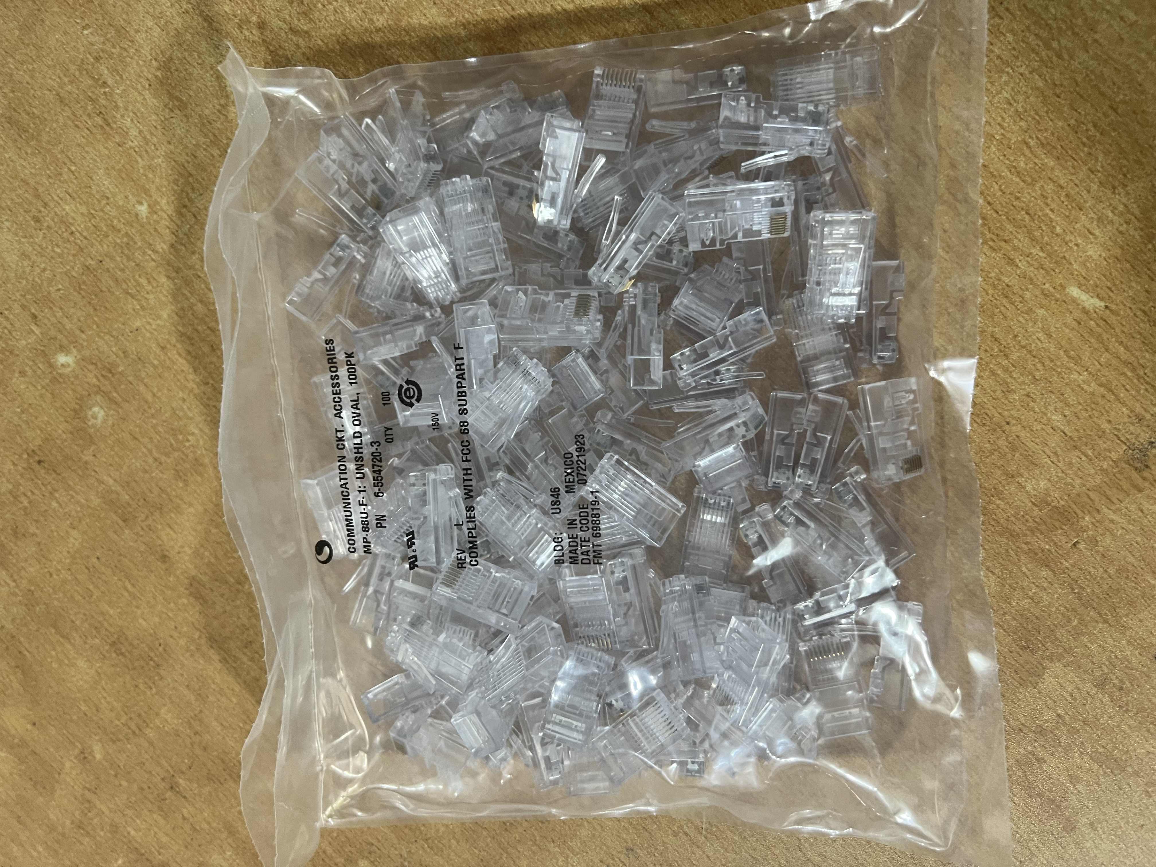 Hạt mạng rj45 Cat5e AMP Commscope- Đầu bấm mạng RJ45 cat5e cad6 loại 100 chiếc/1 túi - Chân Hạt mạng Cat5 cat 6 Commcsope chống oxy hoá cho tín hiệu đường truyền tốt và ổn định.- Chắc hẳn không còn ai xa lạ với từ khóa "hạt mạng rj45", "đầu bấm rj45",...nhà bạn có máy tính là bạn phải cần tới đầu bấm RJ45 để kết nối mạng LAN cho máy tính của mình.Mặc dù là vật dụng vô cùng nhỏ bé nhưng hạt mạng RJ45 lại chứa trong mình 1 sức mạnh khủng khiếp.Đầu bấm RJ45 được chia làm 2 loại là dành cho dây mạng Cat5e và dây mạng Cat6.Với loại dây mạng Cat5e cat6 đầu bấm được thiết kế các lỗ cài thằng hàng nhau và vừa khít đầu dây Cat5e để đảm bảo việc tiếp xúc chân đồng của đầu bấm được đóng chặt vào sợi dây mạng.- Với chất liệu đồng nguyên chất,tiết diện lớn đảm bảo mọi yêu cầu khắt khe về tốc độ đường truyền 1Gigabit.