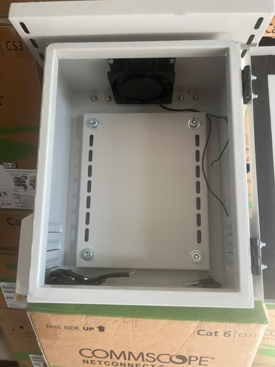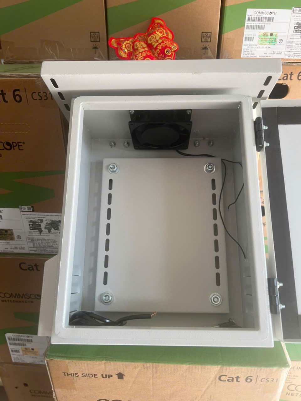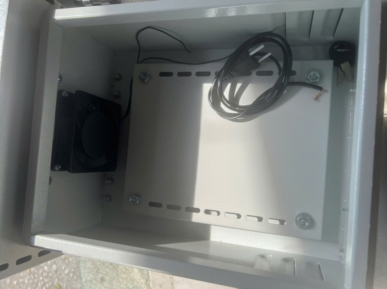 Tủ điện ngoài trời 350x250x150, có Mái che, có Tai Treo, có quạt