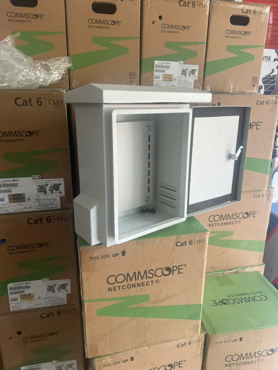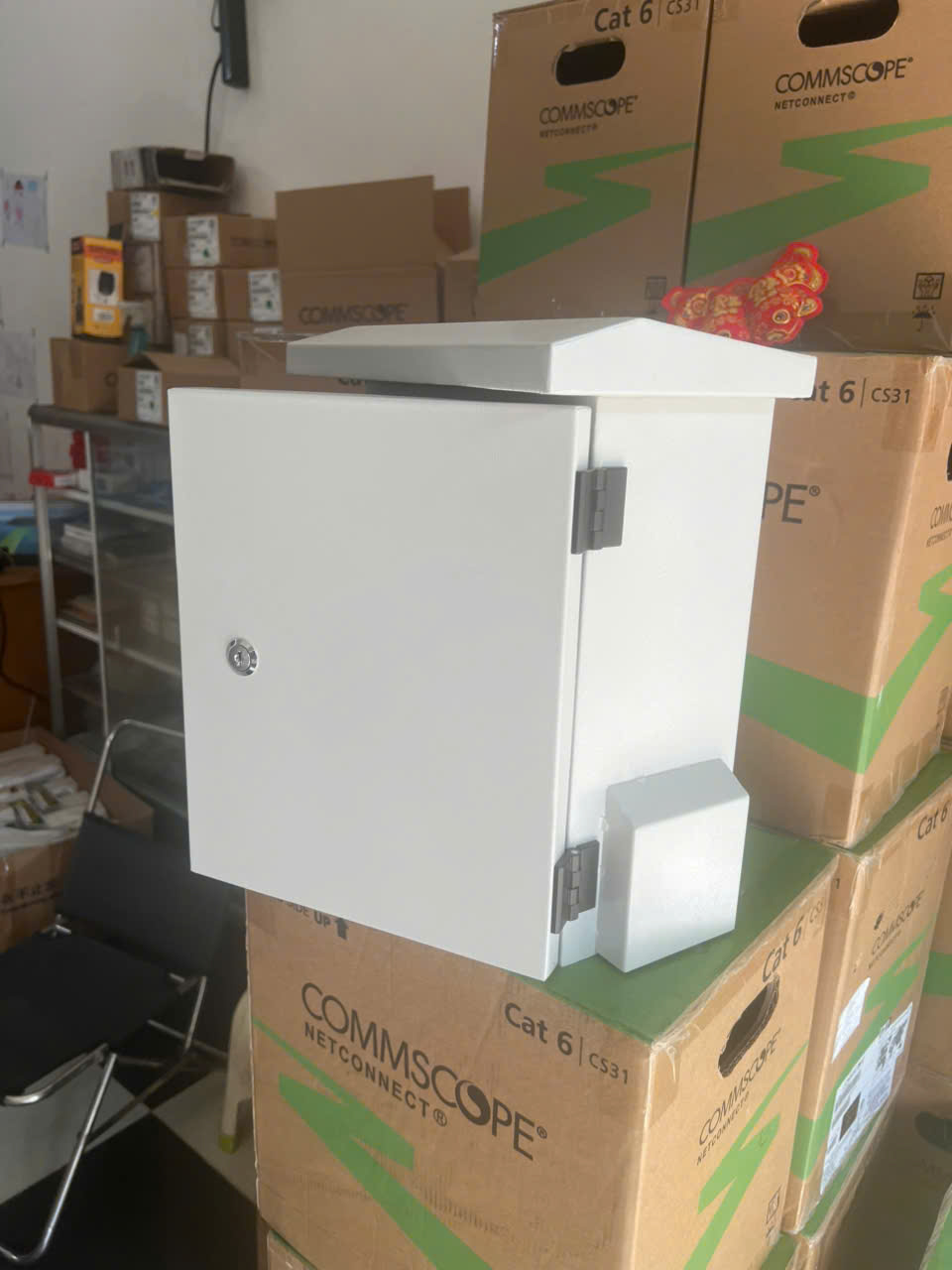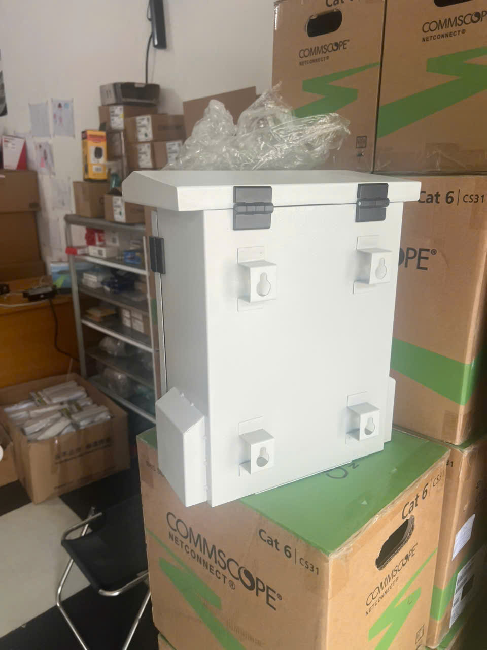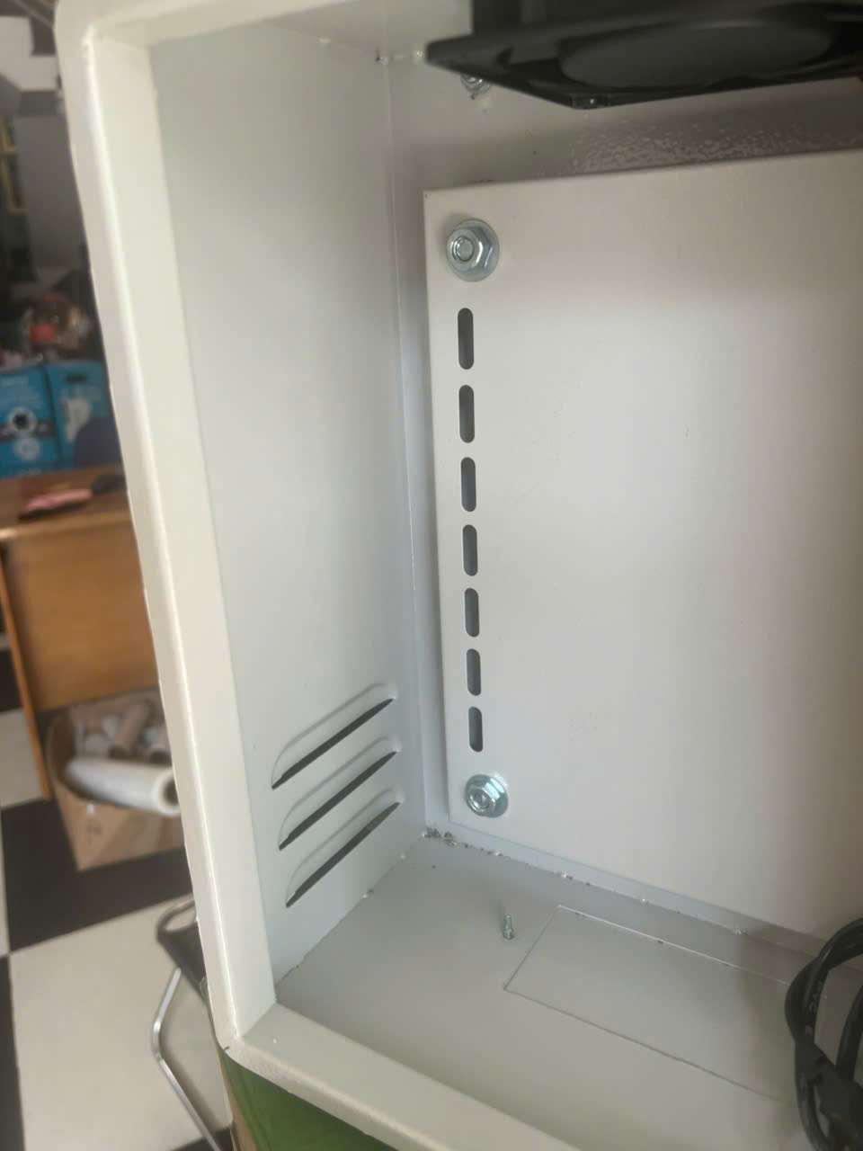 Tủ điện ngoài trời 350x250x150, có Mái che, có Tai Treo, có quạt